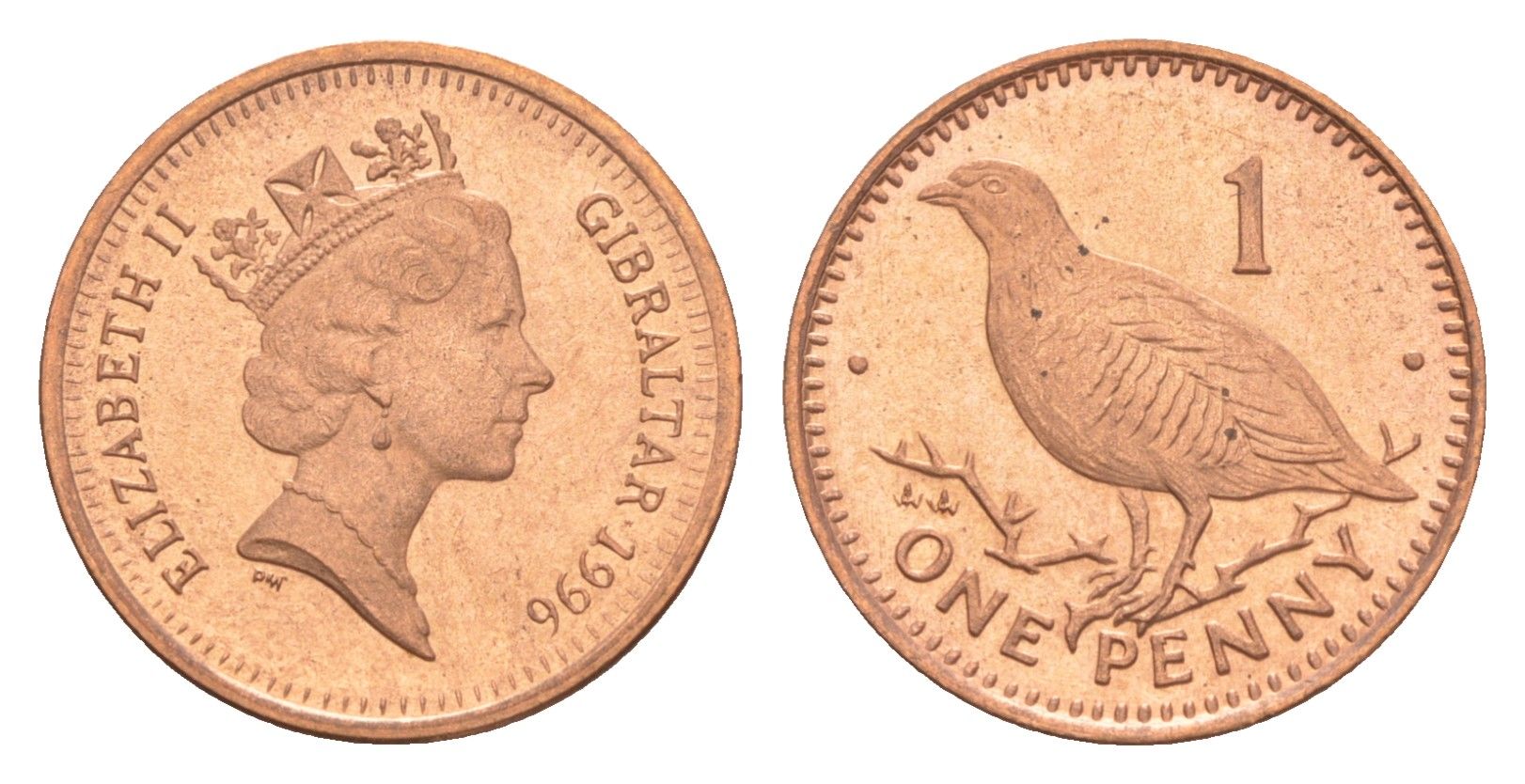Гибралтар 1 пенни 1996 KM 20a сталь плакированная медью UNC 4115-161