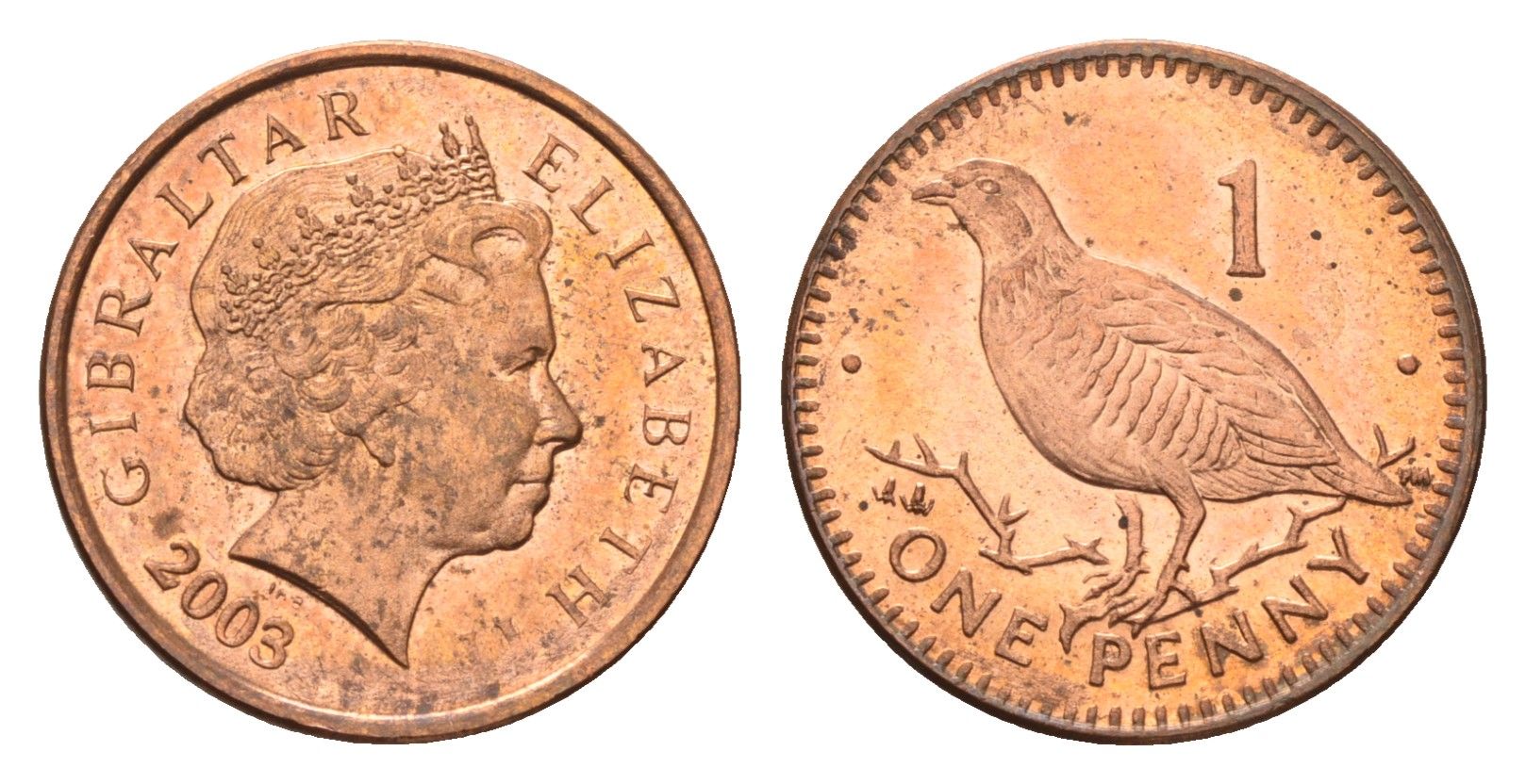 Гибралтар 1 пенни 2003 KM 773 сталь плакированная медью UNC 4668-469