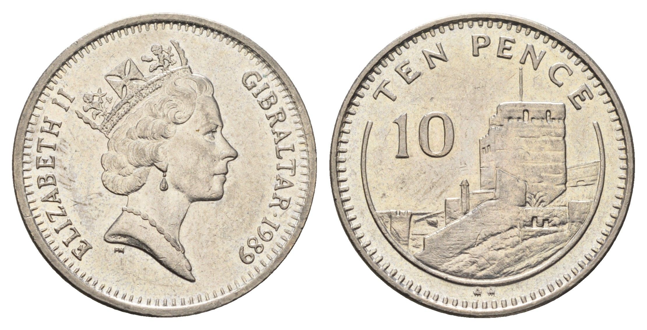 Гибралтар 10 пенсов 1989 KM 23.1 медно-никель 4666-322