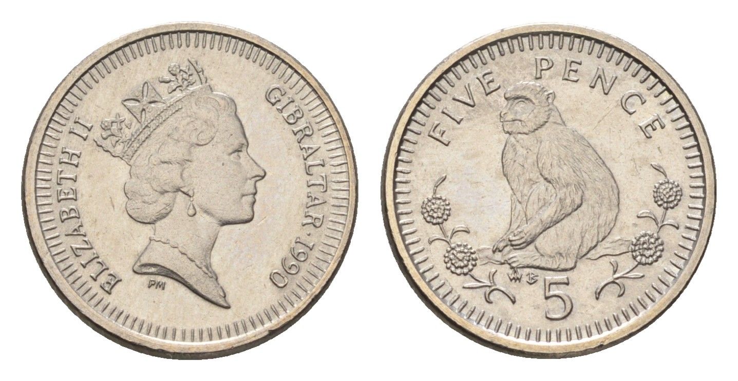 Гибралтар 5 пенсов 1990 KM 22.2 медно-никель UNC 4668-513