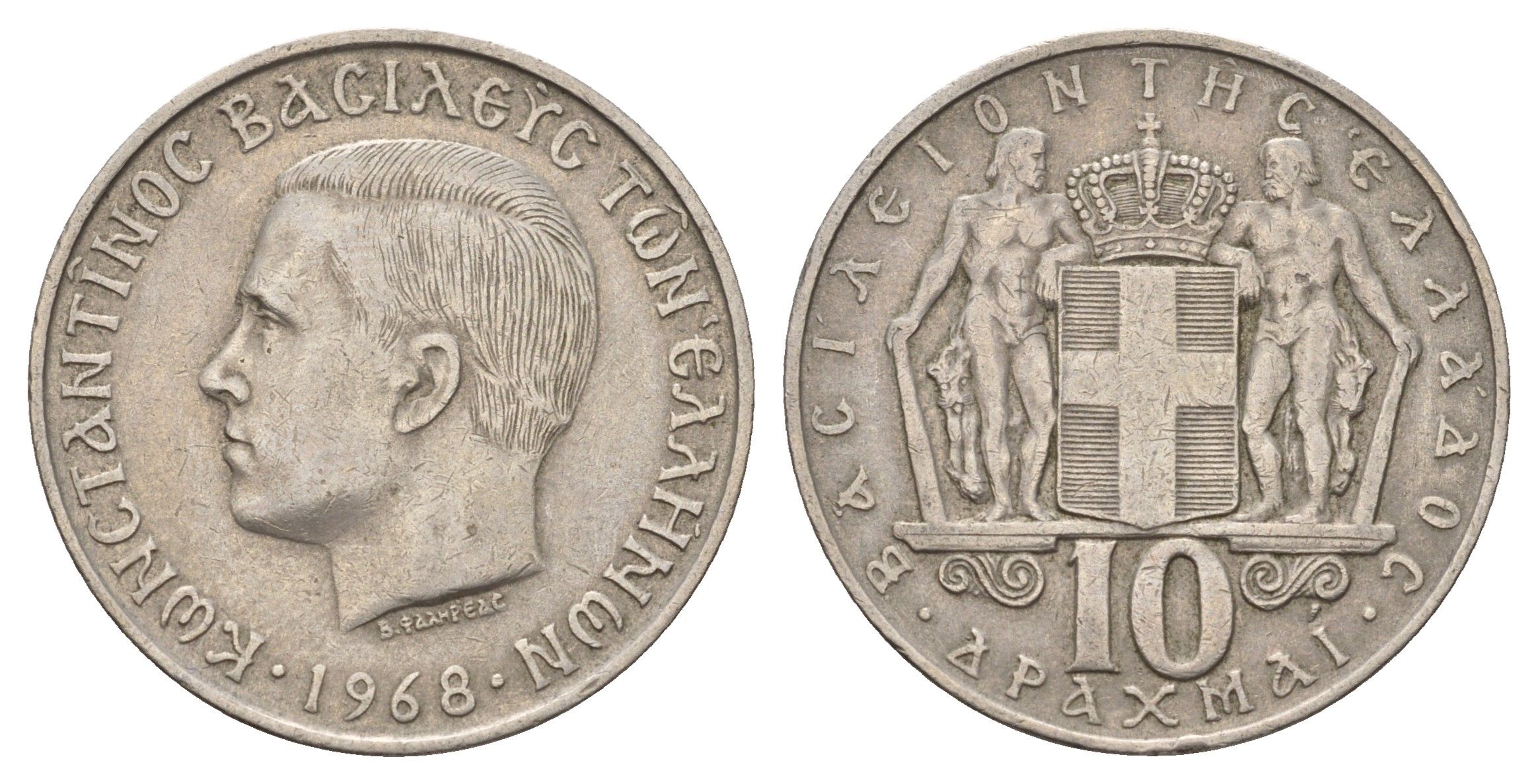 Греция 10 драхм 1968 Константин II (1966-1973) KM 96 медно-никель 4607-421