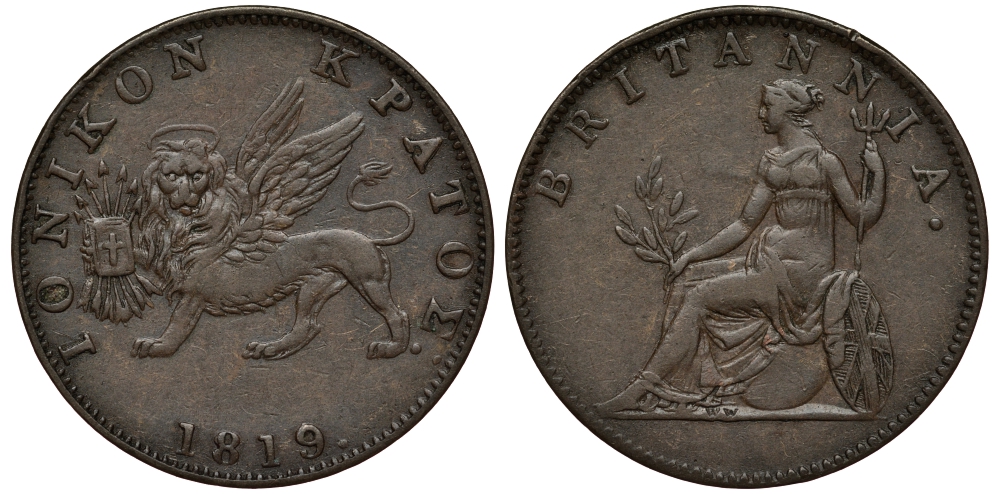 ГРЕЦИЯ, ИОНИЧЕСКИЕ ОСТРОВА 2 ЛЕПТЫ 1819 KM 31 медь 441-1224