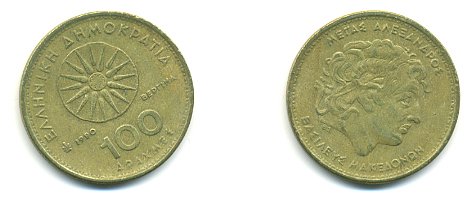 ГРЕЦИЯ 100 ДРАХМ 1990 АЛЕКСАНДР МАКЕДОНСКИЙ KM 159 латунь 54-2214