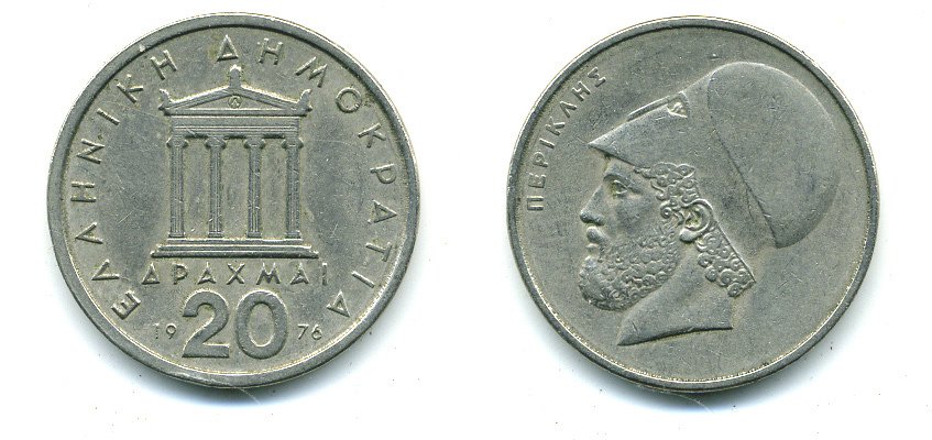 Греция 20 драхм 1976 Перикл, пантеон KM 120 медно-никель 59-1333
