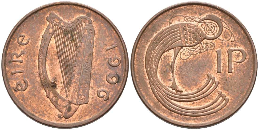Ирландия 1 пенни 1996 птичка KM 20а сталь плакированная медью 92-215