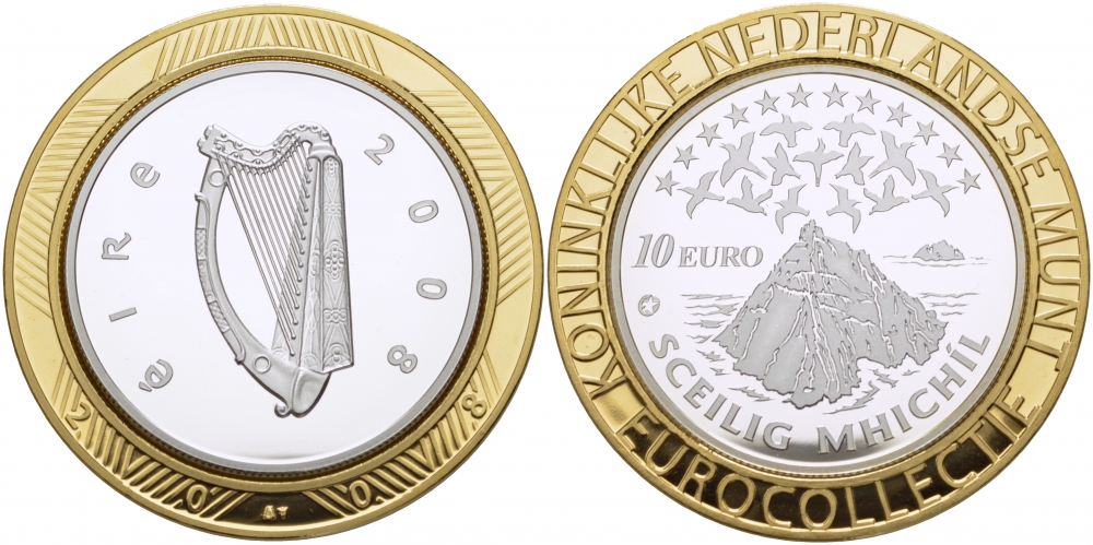 Ирландия 10 евро 2008 Европейское культурное наследие, монастырь на острове Скеллиг-Майкл KM 54 серебро PROOF 01-167-13