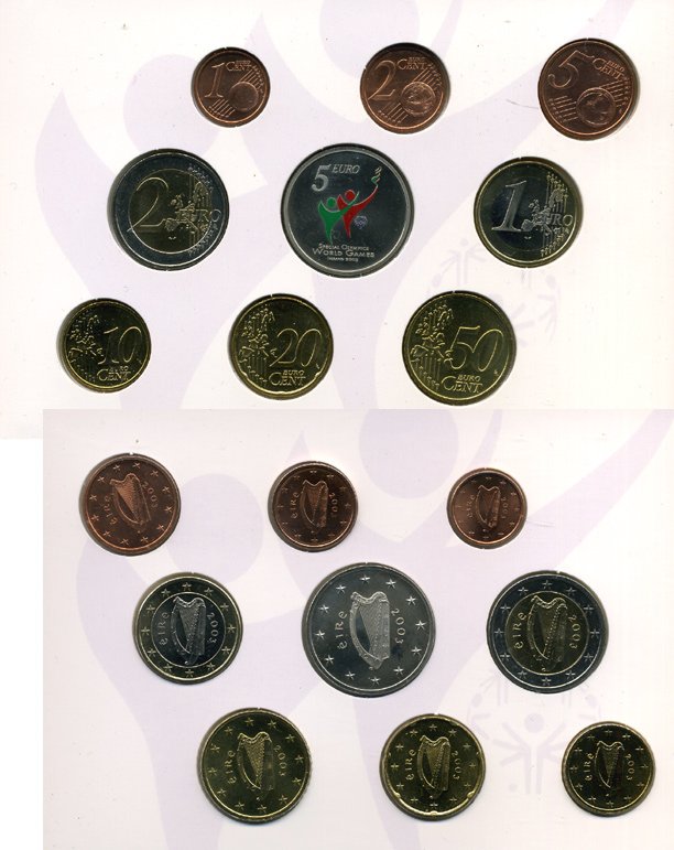 Ирландия официальный набор из 9 монет 2003 включая 5 евро специальные Олимпийские игры в Ирландии 2003, цветная эмаль KM MS12 UNC 4-5-2-10