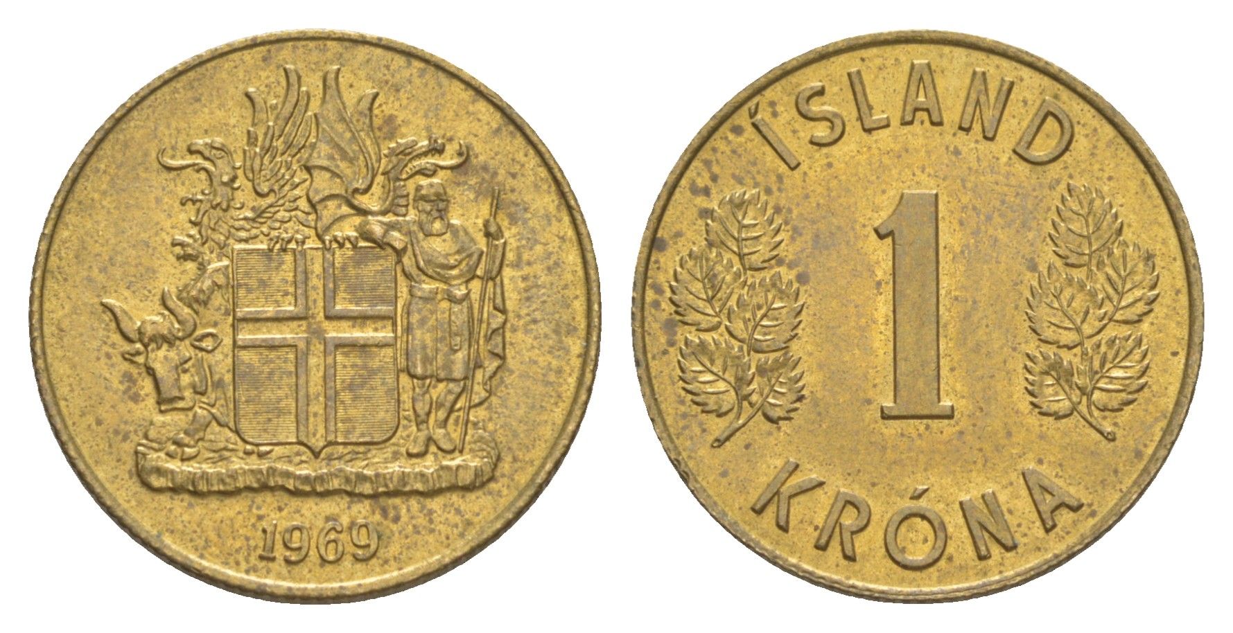 Исландия 1 крона 1969 KM 12a никель латунь UNC 4617-433