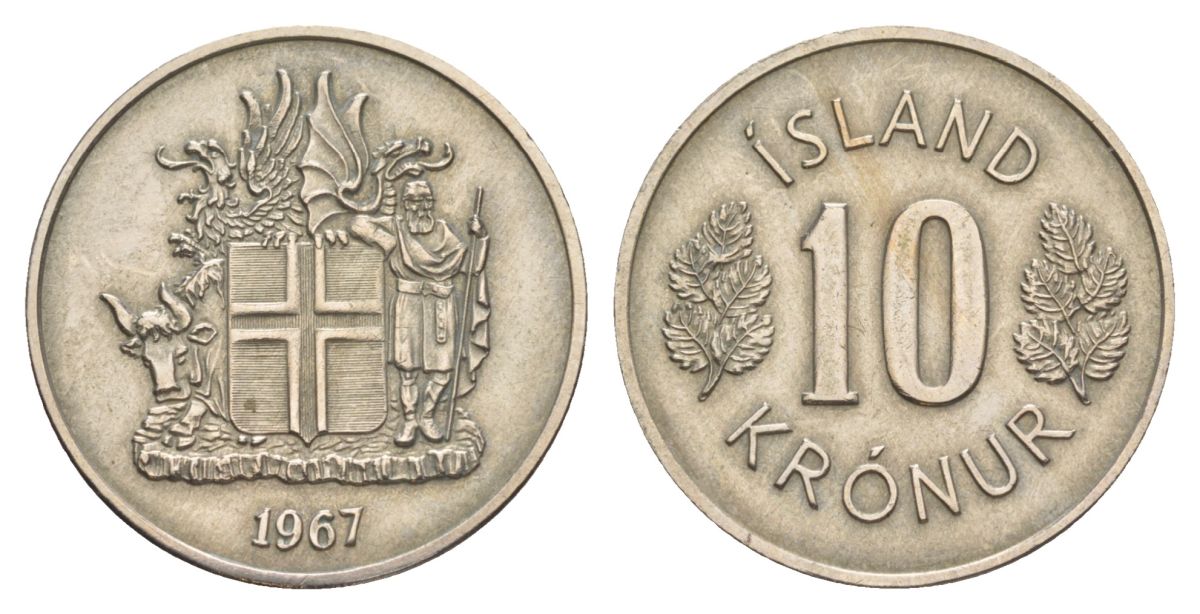 Исландия 10 крон 1967 KM 15 медно-никель 4635-134