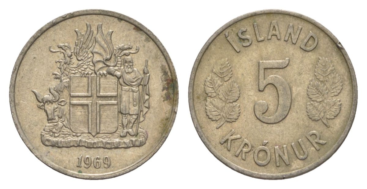 Исландия 5 крон 1969 KM 18 медно-никель 4632-962