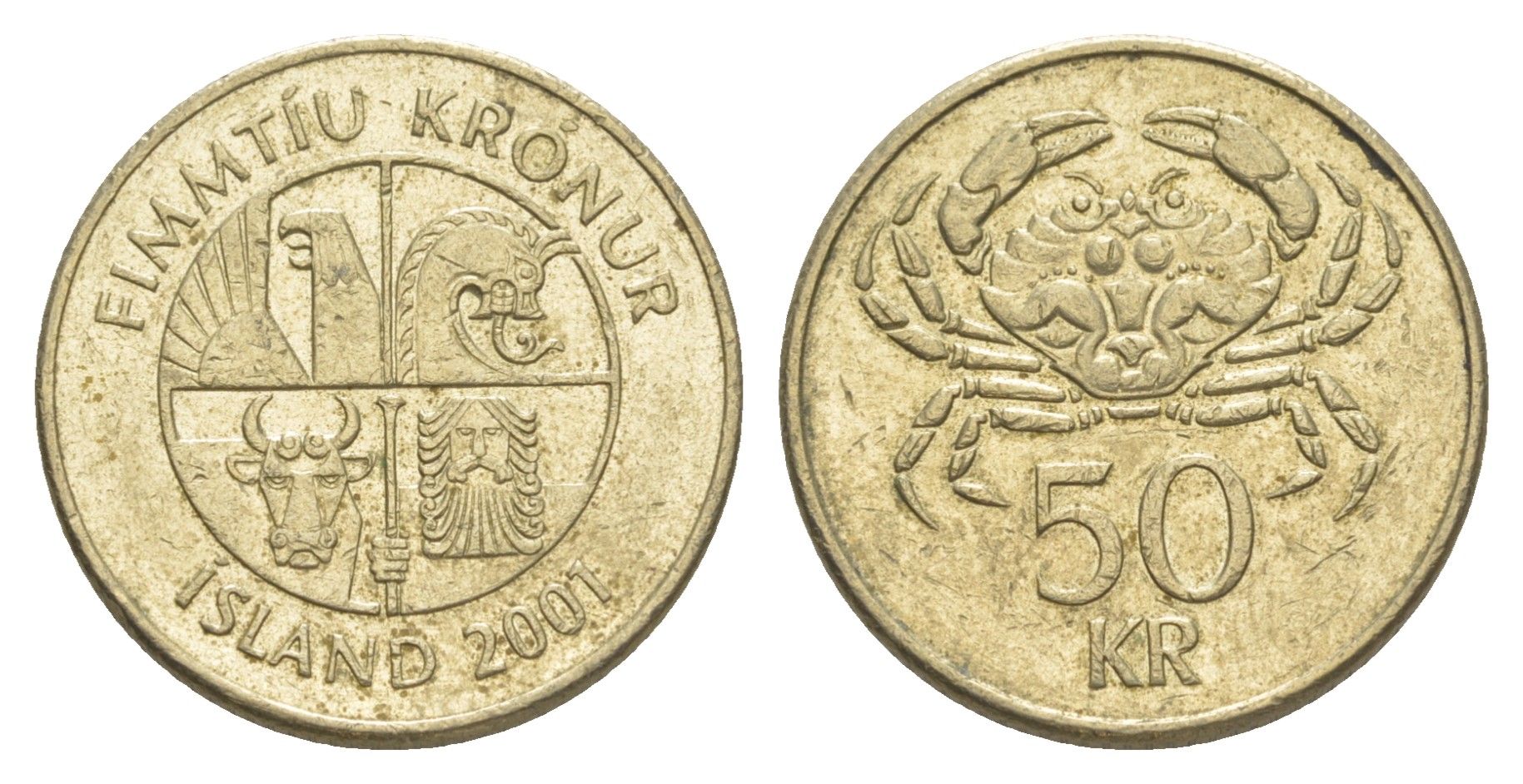 Исландия 50 крон 2001 KM 31 никель латунь 4523-634