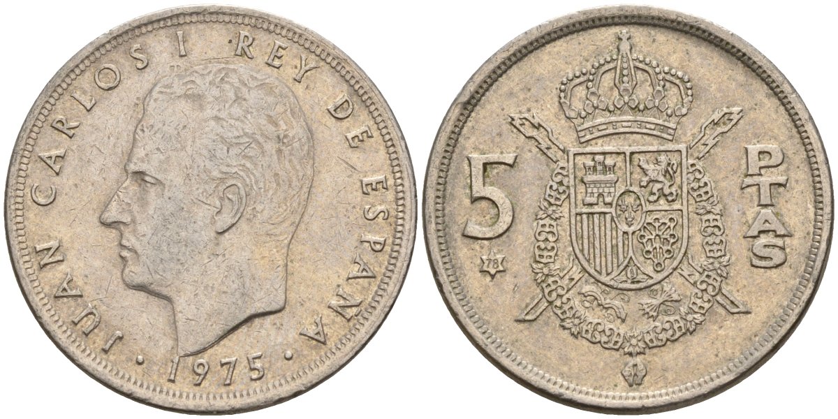 Испания 5 песет 1975 (78) Хуан Карлос I (1975 - 2014) KM 807 медно-никель 4155-632