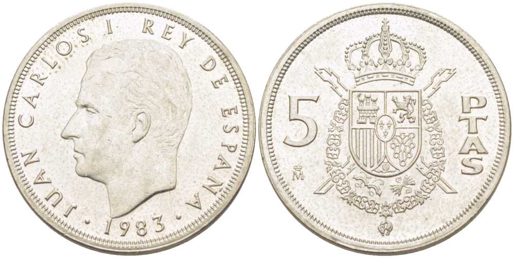 Испания 5 песет 1983 Хуан Карлос I (1975-2014) KM 823 медно-никель 213-156