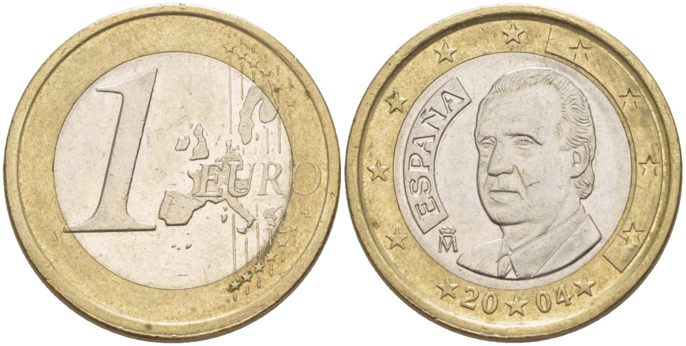 ИСПАНИЯ 1 ЕВРО 2004 ХУАН КАРЛОС I KM 1046 биметалл 4543-257