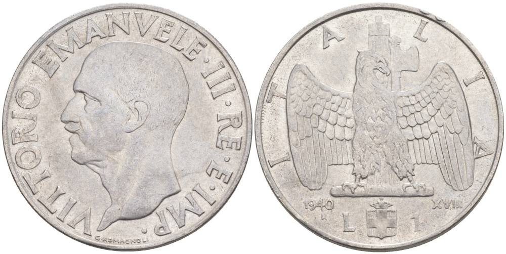 ИТАЛИЯ 1 ЛИРА 1940 R, ГОД XVIII, ВИКТОР ЭММАНУИЛ III (1900-1946), МАГНИТНАЯ, ГУРТ РИФЛЁНЫЙ KM 77b, VEM3. 1099 нержавеющая сталь 3855-345