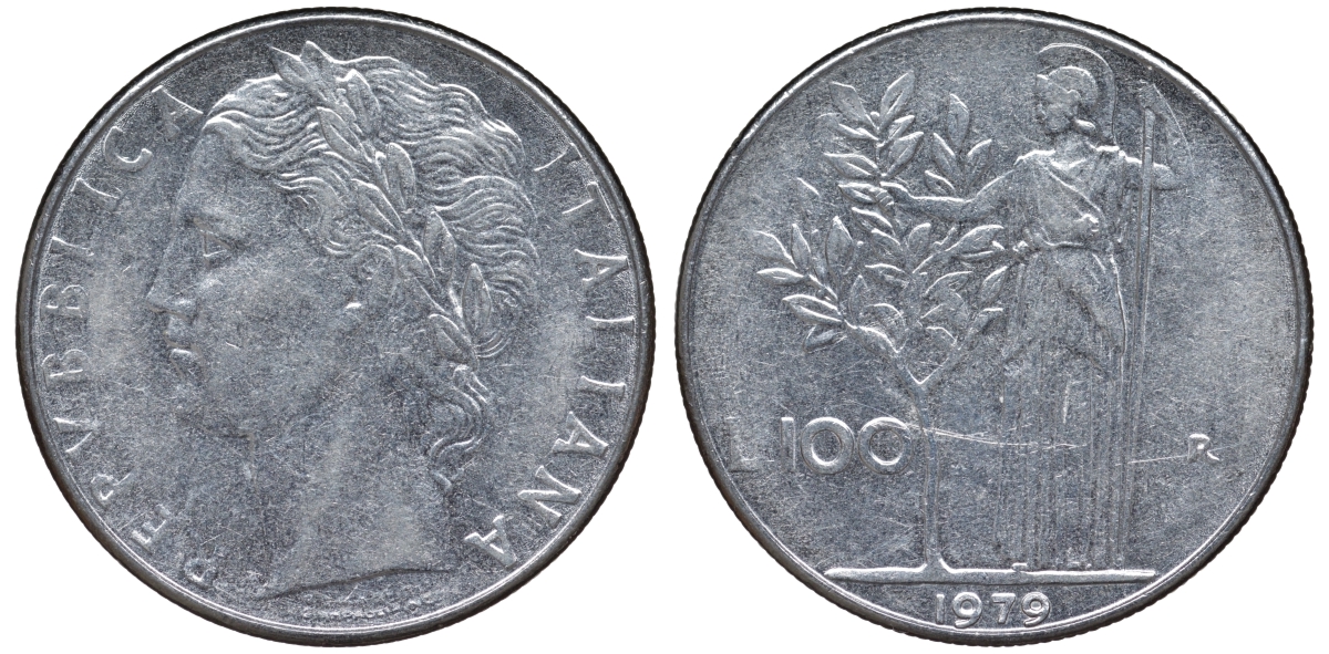 Италия 100 лир 1979 R KM 96.1 нержавеющая сталь 4144-121