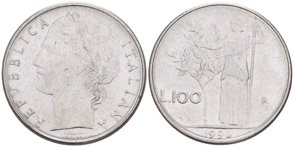 ИТАЛИЯ 100 ЛИР 1990 R, АФИНА, ДИАМЕТР 148 ММ. KM 96.2 нержавеющая сталь 4387-236