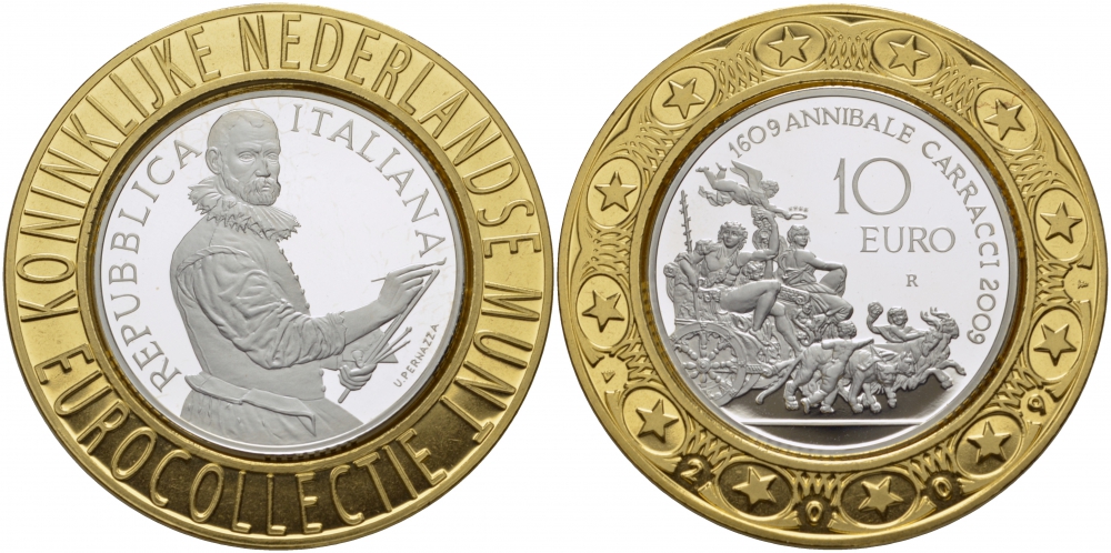 Италия 10 евро 2009 400 лет со дня смерти Аннибале Карраччи, евроколлекция Нидерландского монетного двора KM 318 серебро PROOF 05-141-21