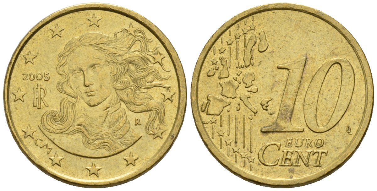 Италия 10 евроцентов 2005 KM 213 нордик 4147-753