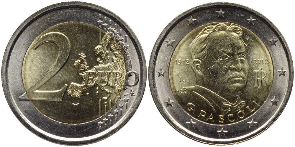 Италия 2 евро 2012 100 лет со дня смерти Джовани Пасколи KM 355 биметалл UNC 38-744
