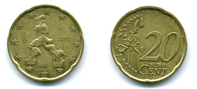 Италия 20 евроцентов 2002 KM 214 нордик 29-1234