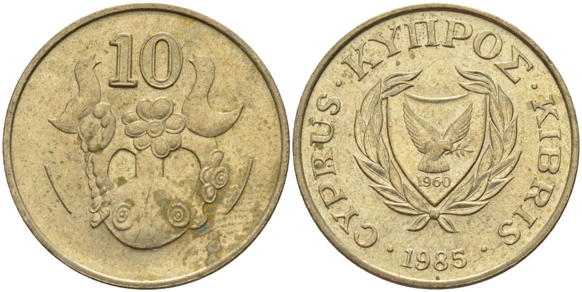 Кипр 10 центов 1985 KM 56.2 никель латунь 4141-1141