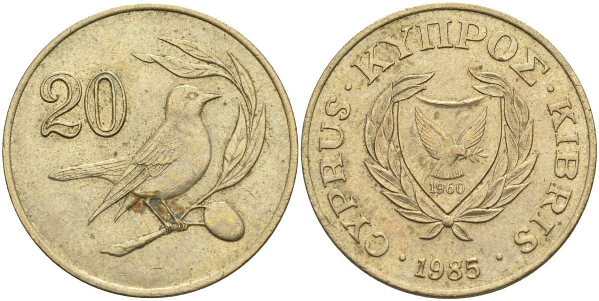 Кипр 20 центов 1985 KM 57.2 никель латунь 4140-731