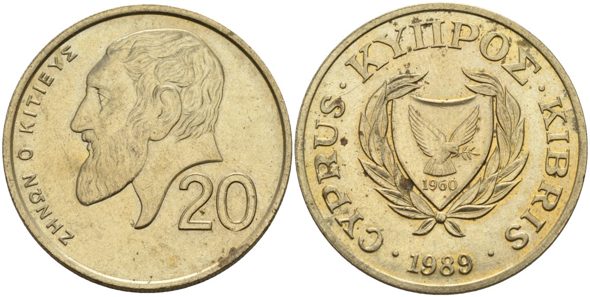 Кипр 20 центов 1989 KM 62.1 никель латунь 4140-812