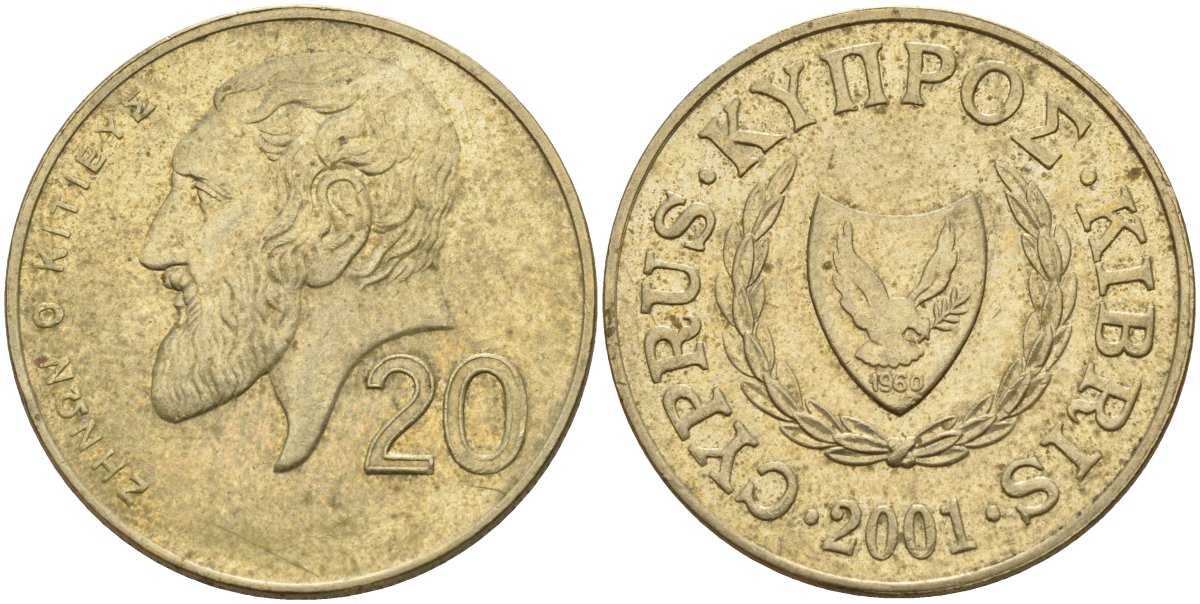 Кипр 20 центов 2001 KM 62.2 никель латунь 4140-911