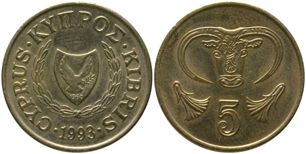 Кипр 5 центов 1993 KM 55.3 никель латунь 4158-557