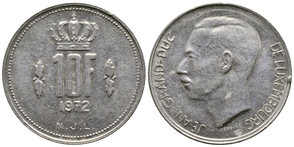 ЛЮКСЕМБУРГ 10 ФРАНКОВ 1972 KM 57 никель 91-123