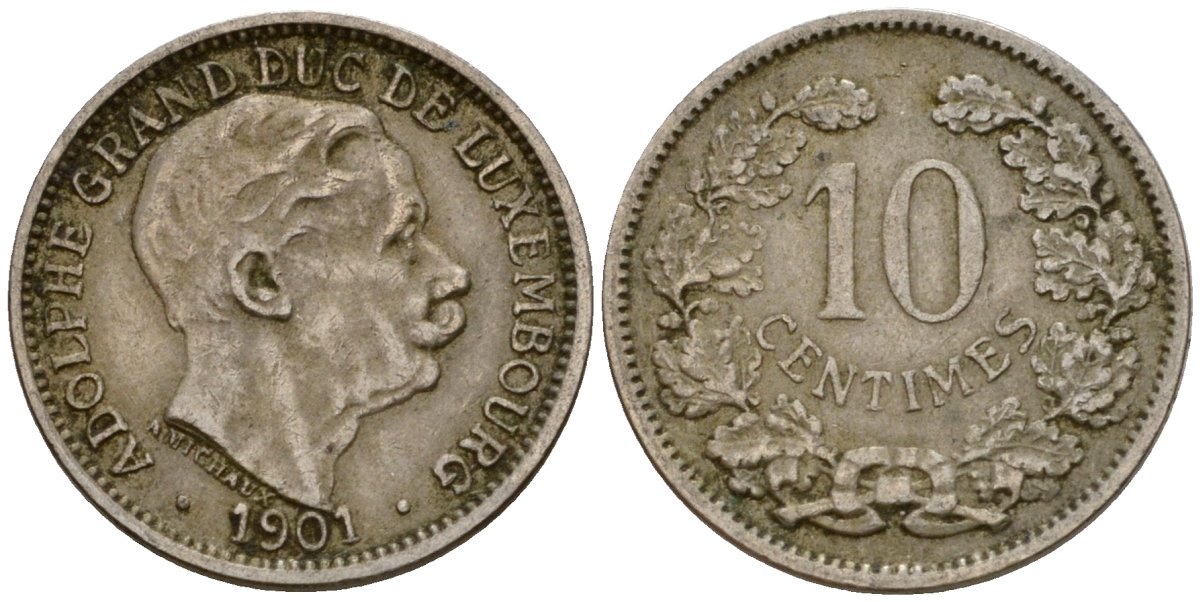 Люксембург 10 сантимов 1901 Адольф (1890-1905) KM 25 медно-никель 4602-434