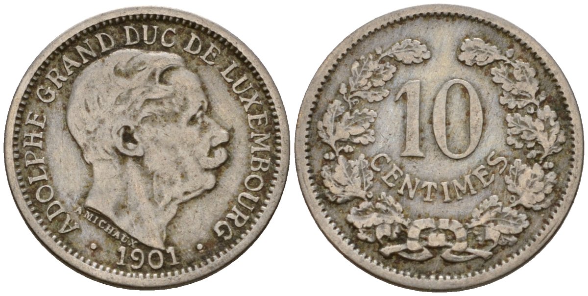 Люксембург 10 сантимов 1901 Адольф (1890-1905) KM 25 медно-никель 4602-441