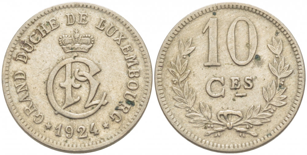 ЛЮКСЕМБУРГ 10 САНТИМОВ 1924 ГОД ТИП KM 34 медно-никель 77-827