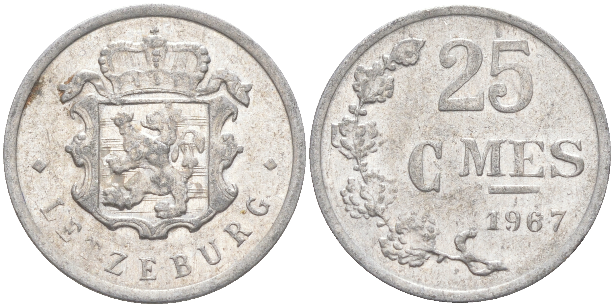 ЛЮКСЕМБУРГ 25 САНТИМОВ 1967 KM 45а.1 алюминий 211-332