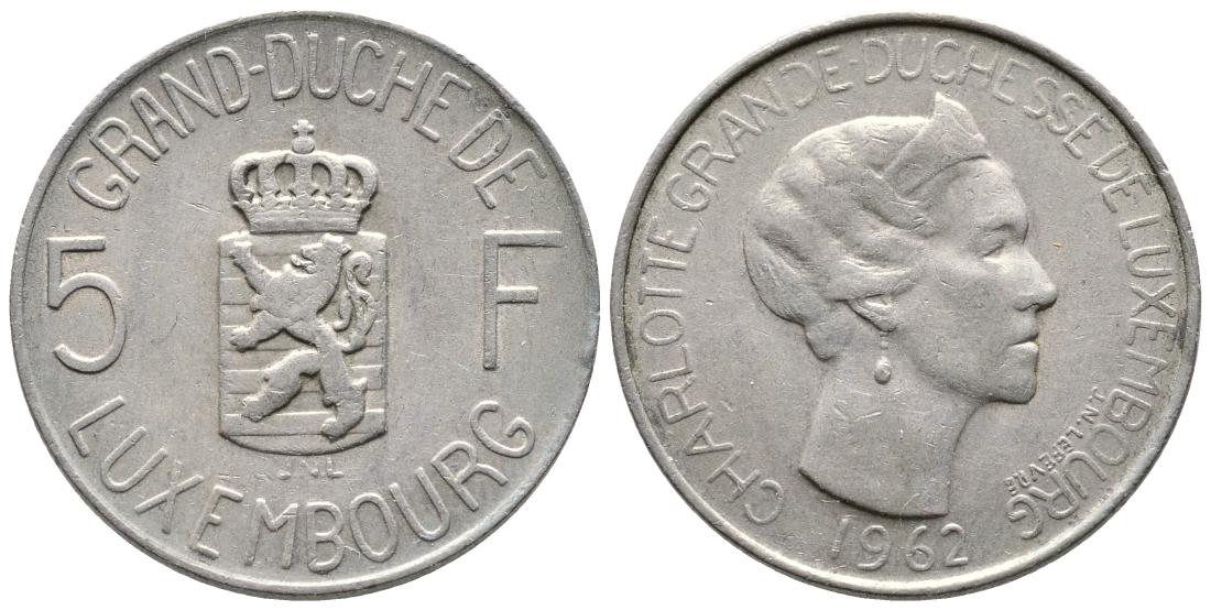 Люксембург 5 франков 1962 Великая герцогиня Шарлотта (1919-1964) KM 51 медно-никель 4364-1133