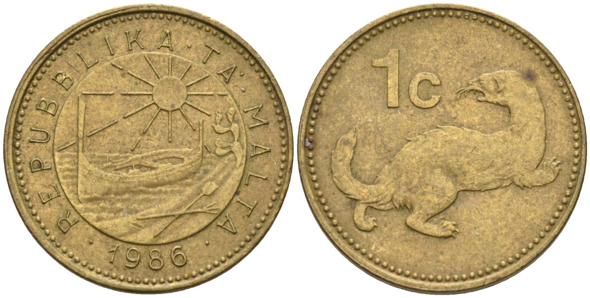 Мальта 1 цент 1986 ласка, горностай KM 78 никель латунь 4585-1129