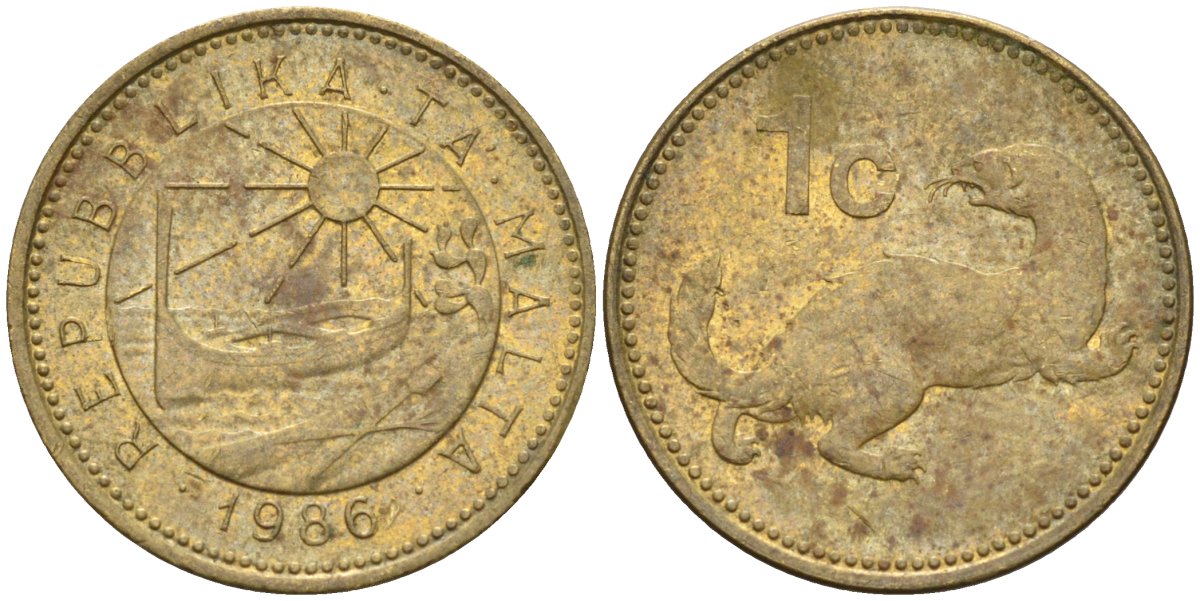 Мальта 1 цент 1986 ласка, горностай KM 78 никель латунь 4585-1131