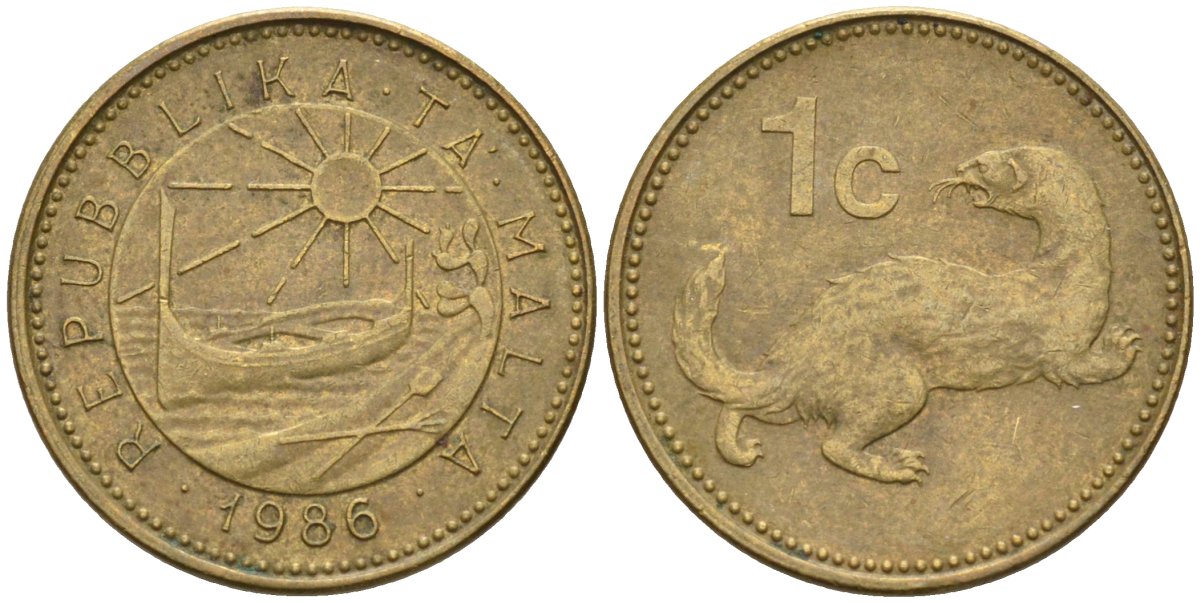 Мальта 1 цент 1986 ласка, горностай KM 78 никель латунь 4585-1134