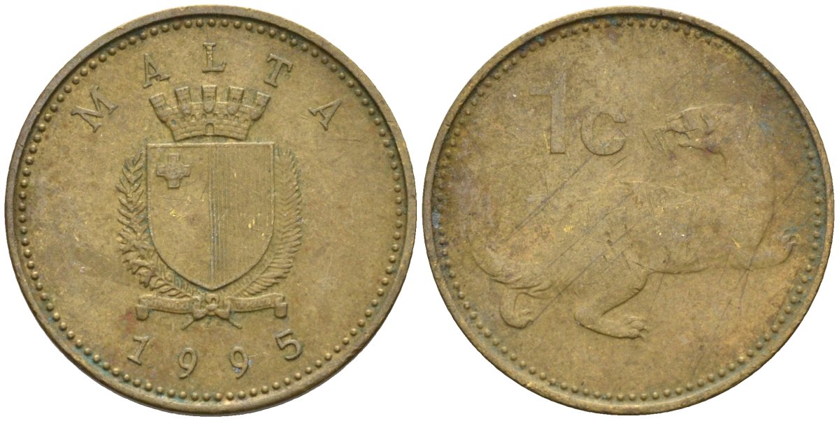 Мальта 1 цент 1995 ласка, горностай KM 93 никель латунь 4585-1222