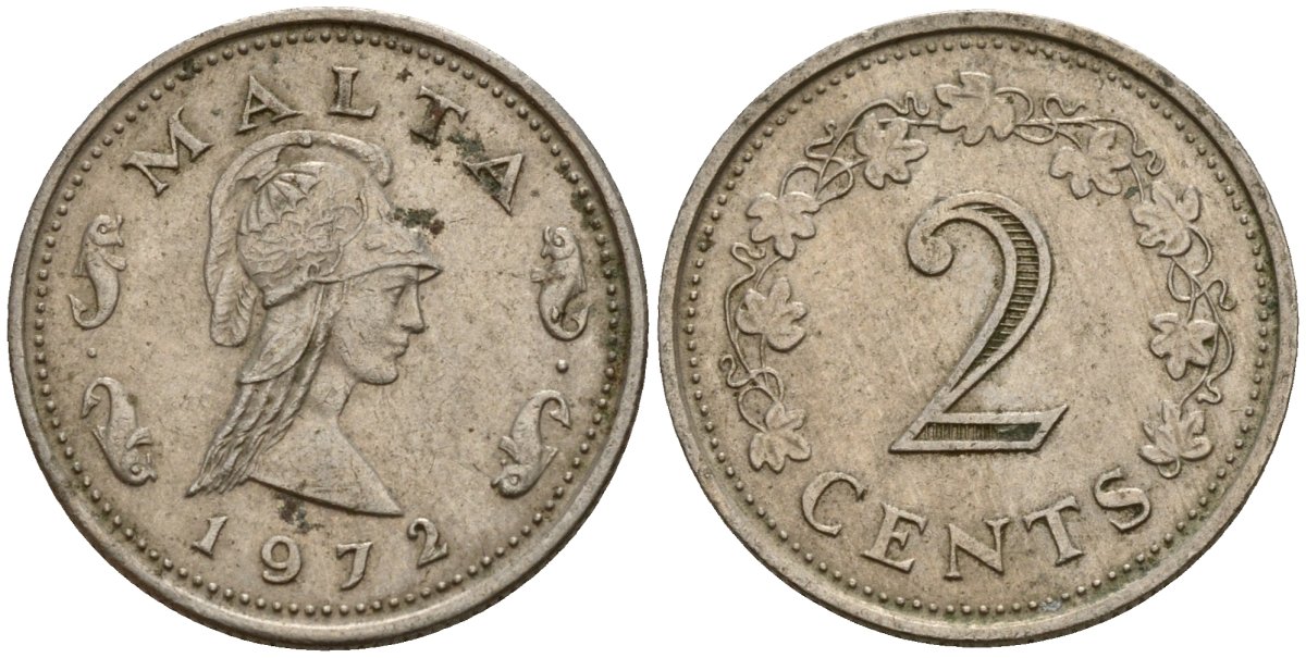Мальта 2 цента 1972 KM 9 медь цинк 4154-638