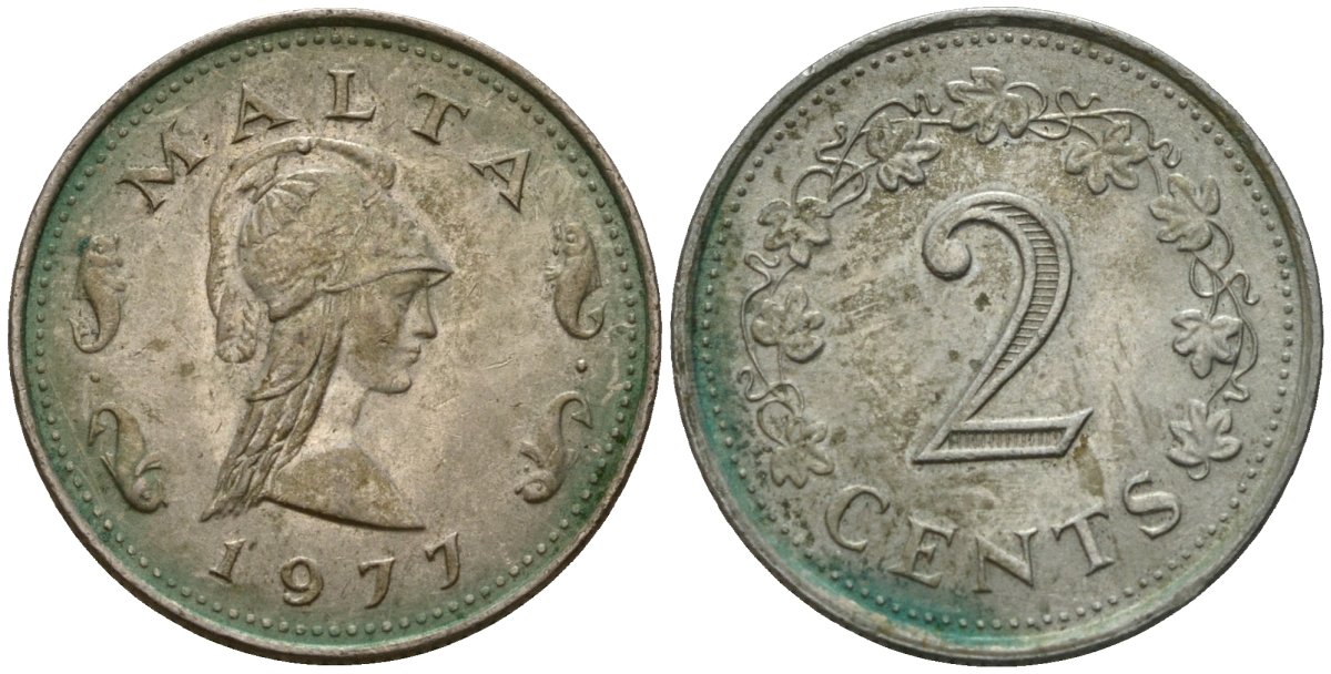 Мальта 2 цента 1977 KM 9 медь цинк 4154-668