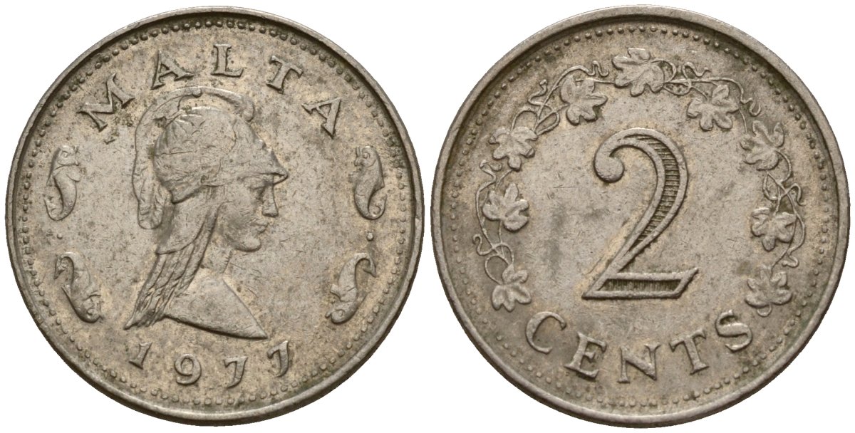 Мальта 2 цента 1977 KM 9 медь цинк 4154-712