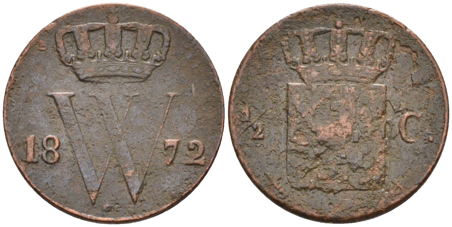 Нидерланды 1/2 цента 1872 Виллем III (1849-1890) KM 90 медь 4115-228