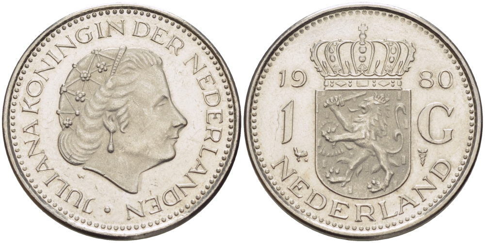 НИДЕРЛАНДЫ 1 ГУЛЬДЕН 1980 ЮЛИАНА KM 184a никель 31-855