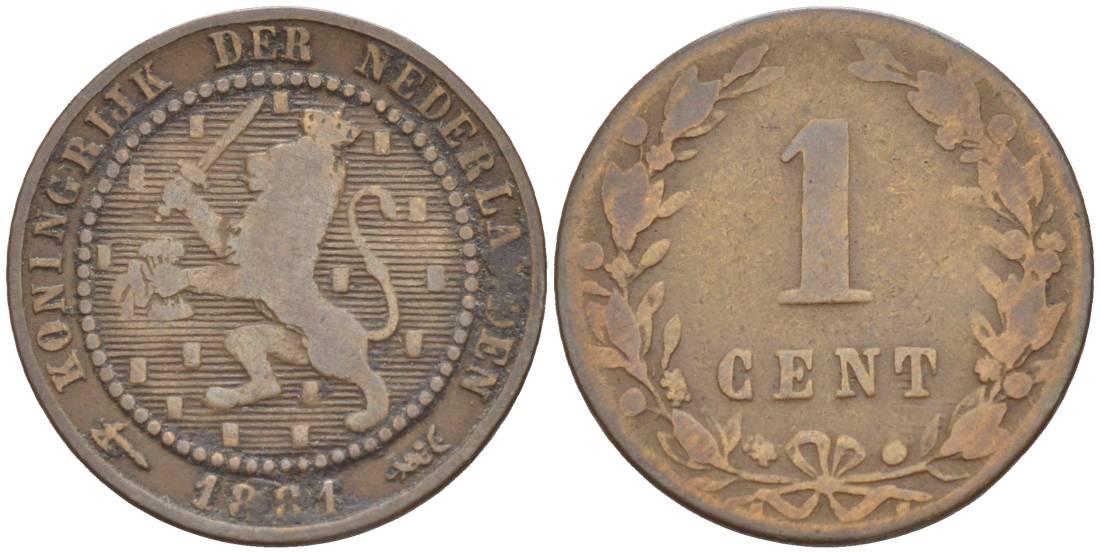 НИДЕРЛАНДЫ 1 ЦЕНТ 1881 ВИЛЛИАМ III (1849-1890) KM 107 бронза 4547-1258