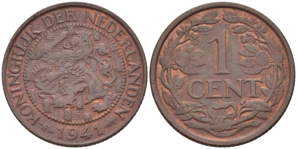 НИДЕРЛАНДЫ 1 ЦЕНТ 1941 ВИЛЬГЕЛЬМИНА (1890-1948) KM 152 бронза 39-119
