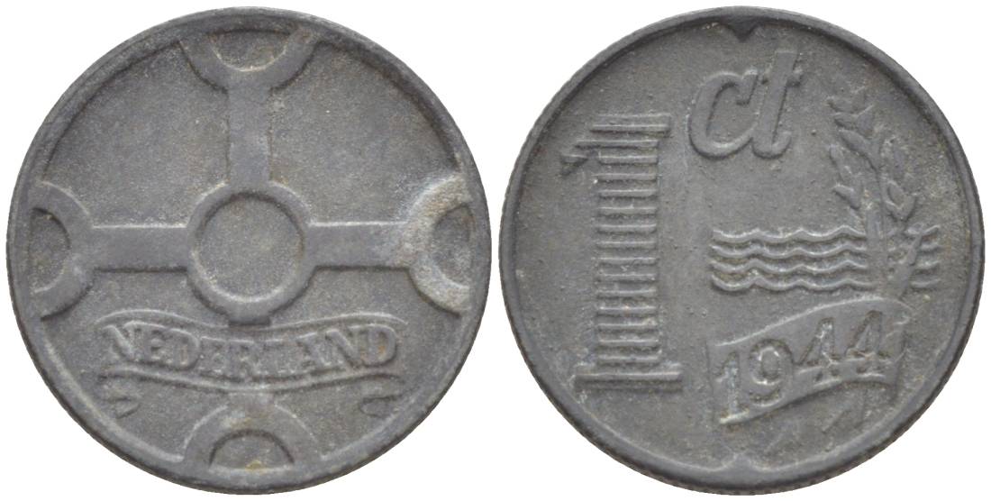 НИДЕРЛАНДЫ 1 ЦЕНТ 1944 ВИЛЬГЕЛЬМИНА I (1891-1948), ГЕРМАНСКАЯ ОККУПАЦИЯ, ВТОРАЯ МИРОВАЯ ВОЙНА KM 170 цинк 4532-1145