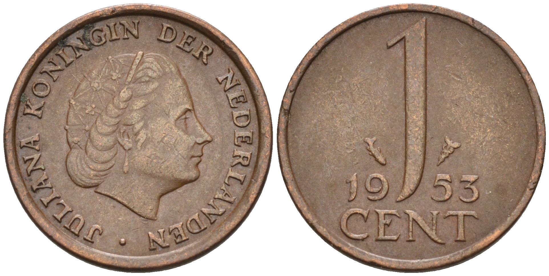 Нидерланды 1 цент 1953 Юлиана (1948-1980) КМ 180 бронза 4174-545