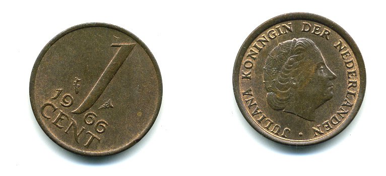 НИДЕРЛАНДЫ 1 ЦЕНТ 1966 ЮЛИАНА KM 180 бронза 76-264